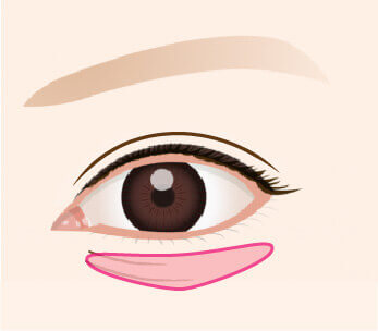 下まぶた裏側の粘膜部分を数ミリ切開し余分な脂肪を除去します。傷跡は、表面から見えることがないため、手術をしたのが周囲の人に気づかれません。また、ダウンタイムも短く、手術後2日すれば仕事も可能です。